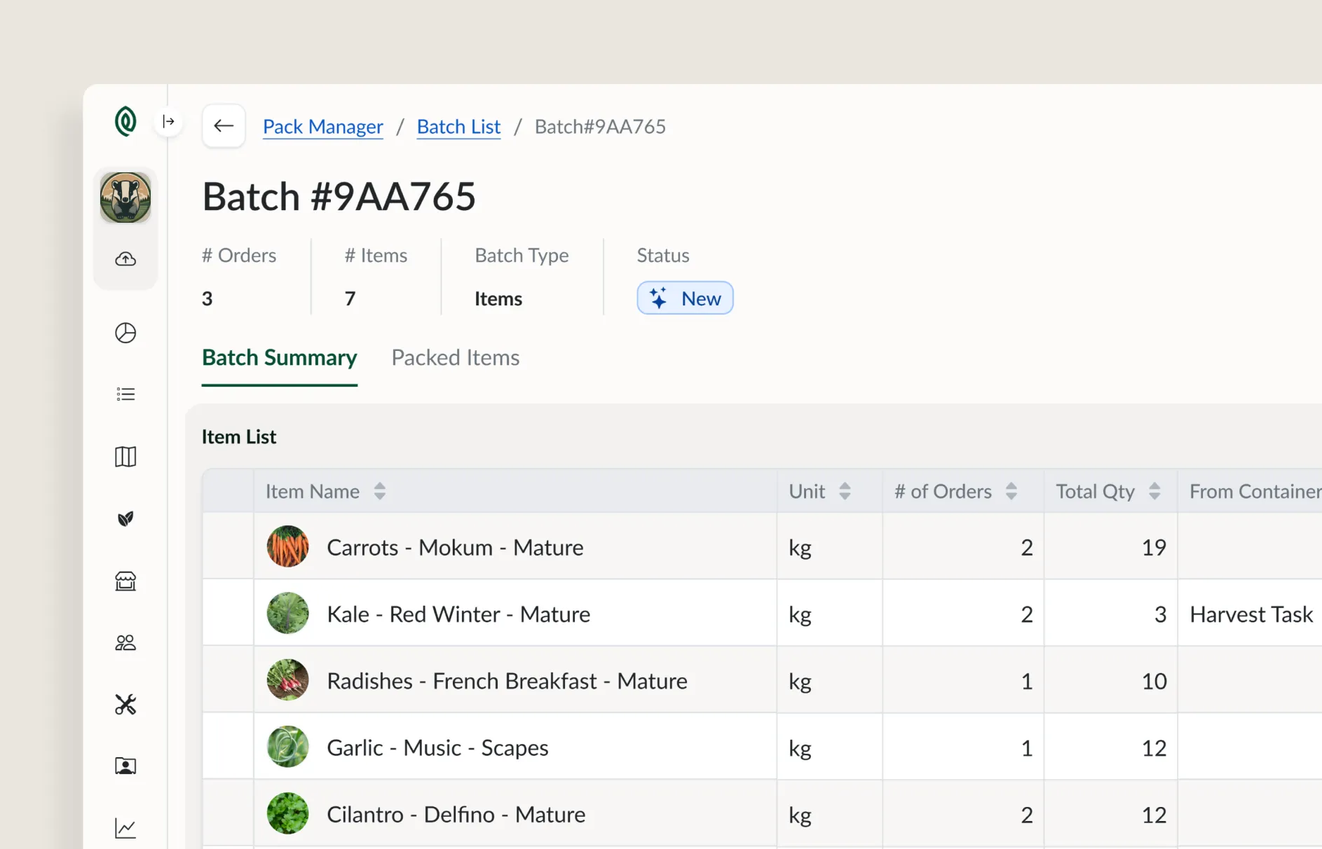 Tend allows you to group orders together, automatically generating a packing list that details what needs to be harvested and packed.